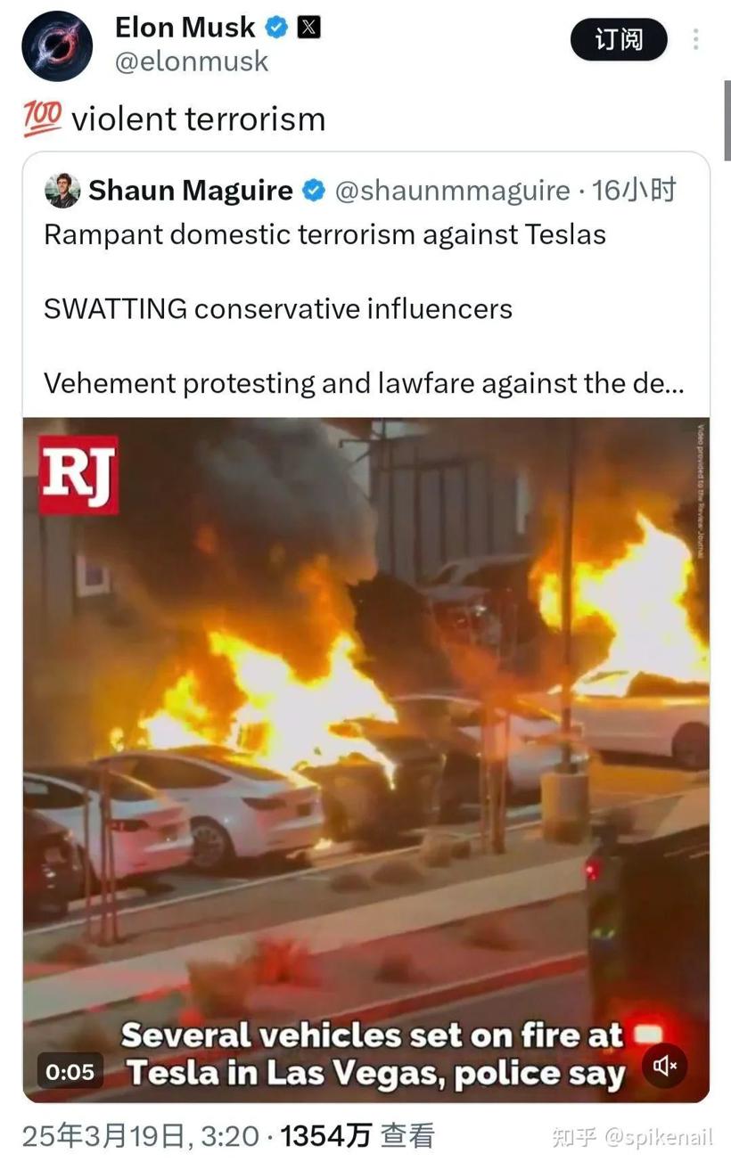 图|其实很多人都有点疑惑,这“Domestic terrorism”要能成立,特斯拉高低得是美国政府所属企业,或者联邦公共资产一类的?