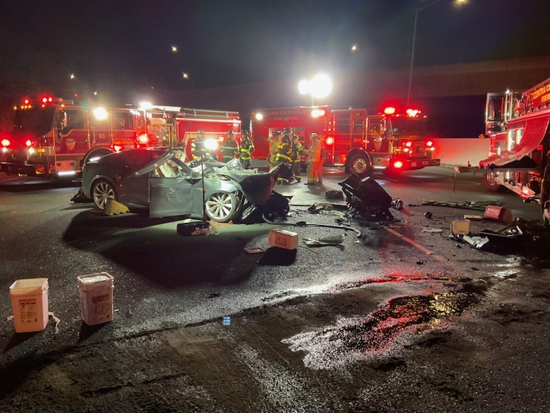 消防部门在推文中写道:“1号消防车被一辆特斯拉汽车撞上,当时这辆消防车堵塞了I-680车道,以便于(相关人员)处理另一起事故。司机在现场被宣布死亡;乘客被救出并送往医院。四名消防员也被送往医院进行评估。”这条推文的配图显示,涉事的特斯拉车辆几乎完全损毁。