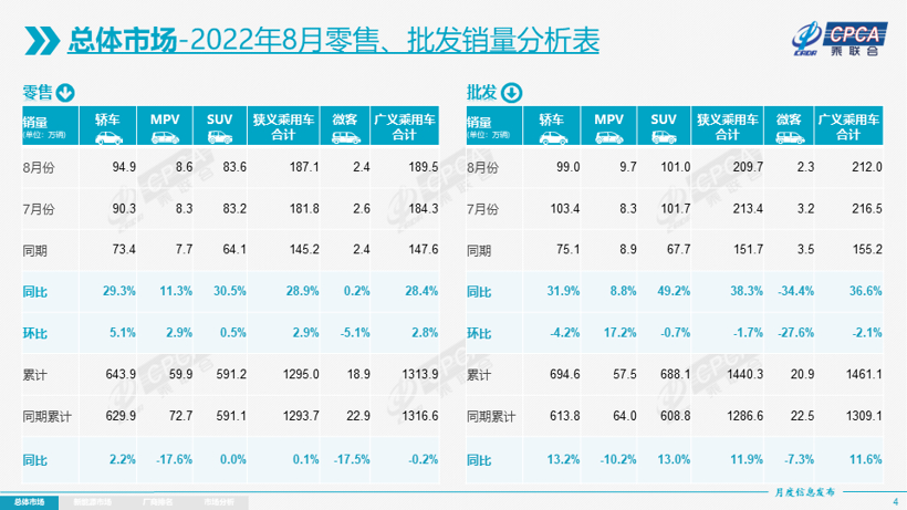 1-8月,市场累计零售量达1295.0万辆,同比增长0.1%。