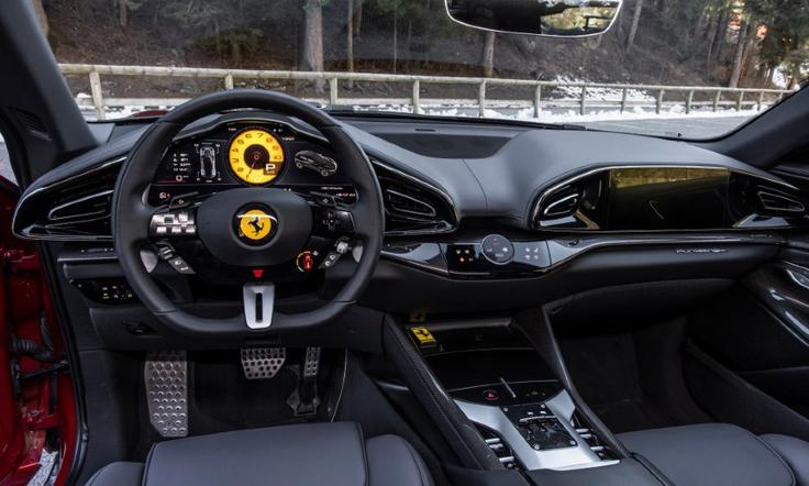 Purosangue采用了数字化人机界面(HMI),该界面基于法拉利在2019年推出的Roma的人机界面之上。驾驶舱的灵感来自SF90 Stradale插电式混合动力车;前排乘客侧搭载了一个10.2英寸显示屏,显示与驾驶员显示屏相同的大部分信息。气温和其他舒适性控制是通过仪表盘中央部分的一个旋转界面进行的。