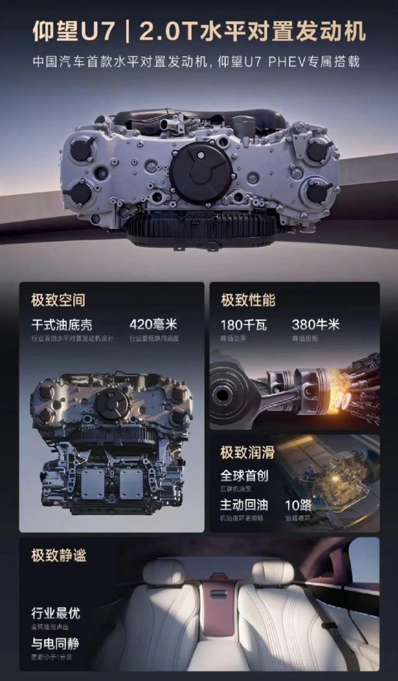 在这样的背景,今时今日,比亚迪选择水平对置发动机,其目的可不是为了炫技。该发动机首搭在仰望U7上,不过是为了带去更好的动力和操控性能。至于成本高或者低,并非考核的关键指标。