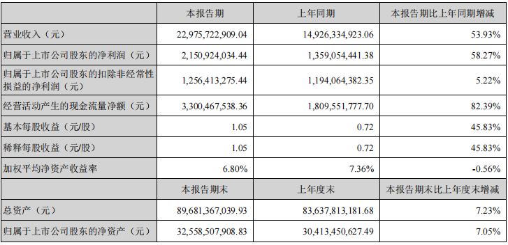 8月24日晚,亿纬锂能发布2023年半年报,报告期内,亿纬锂能实现营收229.76亿元,同比增长53.93%;净利润21.51亿元,同比增长58.27%。