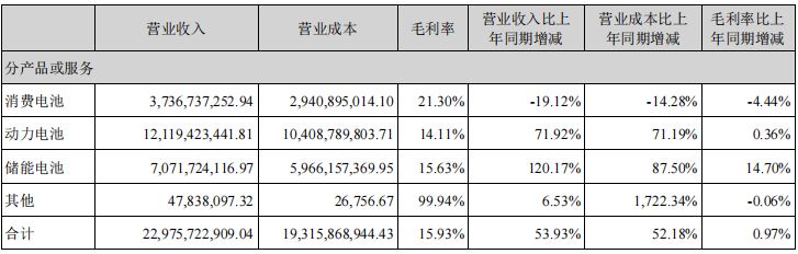 值得一提的是,亿纬锂能储能电池业务取得了较为亮眼的表现。报告期内,亿纬锂能储能电池营收为70.72亿元,同比增长120.17%。