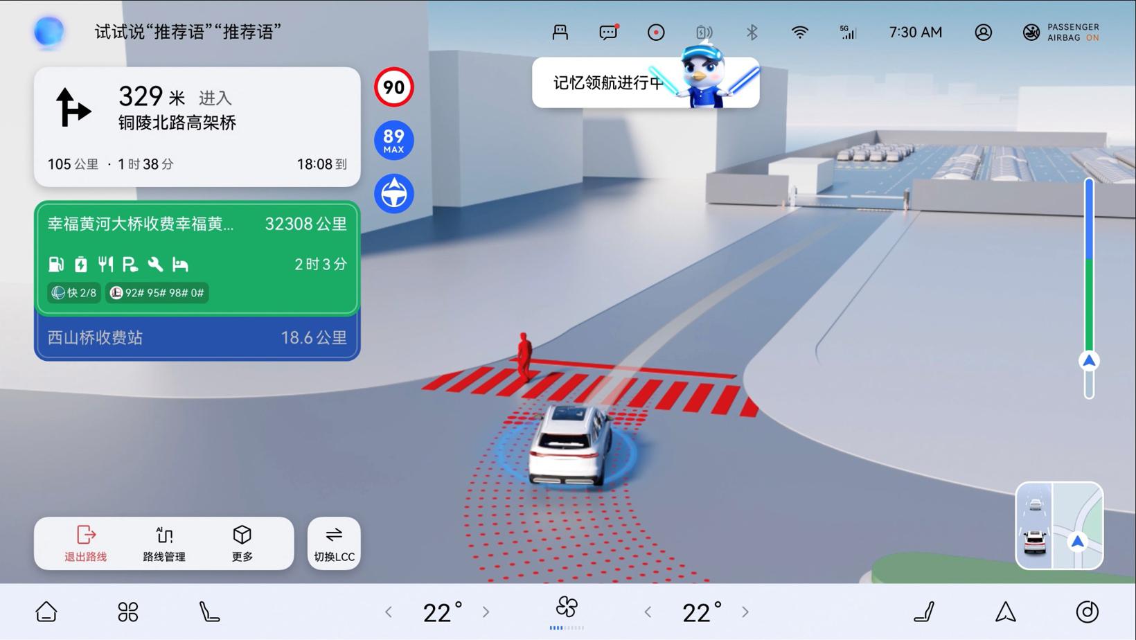 超级泊车功能涵盖了自动泊车、远程挪车、离车泊入等豪华高阶智能泊车,并拥有遥控泊车、记忆泊车等便捷功能,可做到20秒内一次泊入的同级最快自动泊车。独有的手机一键远程挪车功能,解决人不在车旁急需挪车的问题,车主无需到场,通过手机即可挪车。针对奇瑞用户日常城市通勤出行,城市记忆领航功能可根据用户日常行驶路线,自动学习并记忆道路信息,系统最高可记录20条路线,每条最长距离达150公里,成为“帮你记路帮你开的AI代驾”。