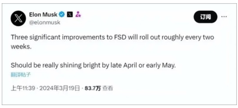 不说别的,早在今年3月19日,马斯克就表示特斯拉FSD以半个月更新一次的速度进行着。到了5月初,随着特斯拉FSD的V12.4版本按计划推出,几乎全面更新模型训练,以提高系统的准确性和可靠性,在如此高频的升级速率下,可以预见,一旦FSD进入中国,仰赖智驾优势的小鹏会面临怎样高强度的挑战,很是清晰。