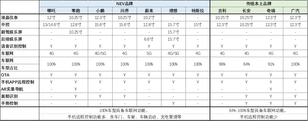 在智能车机系统的比较来看,中国造车新势力凸显了其科技感的优势。比如,除了中控屏,许多中国造车新势力已经在拓展附加娱乐屏以及后排娱乐屏的应用,例如理想、蔚来、零跑等。除此之外,小鹏、问界等也在探索面部识别、手势控制等多模态交互上的应用。